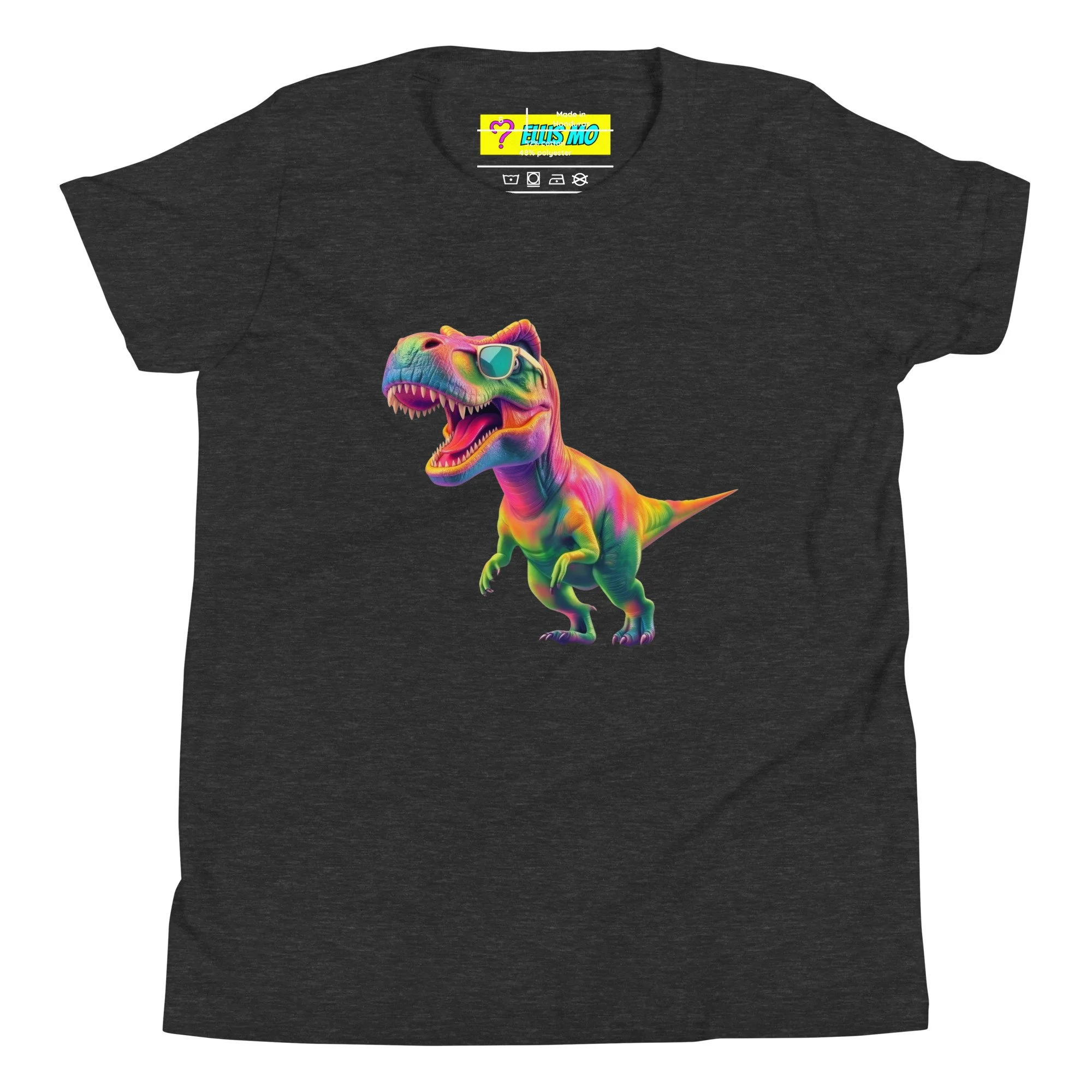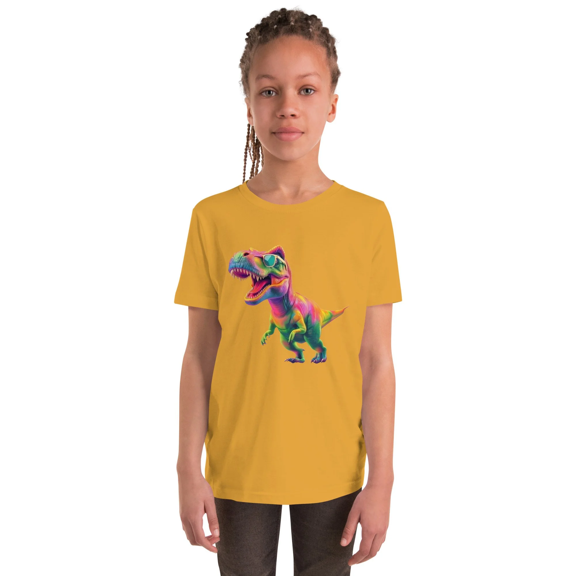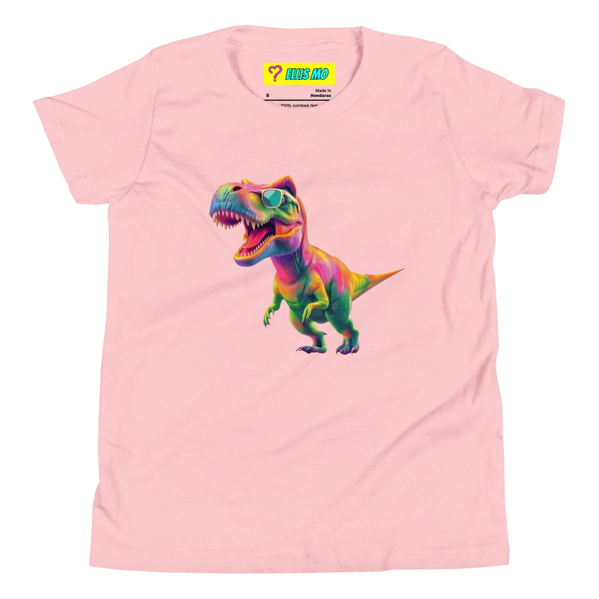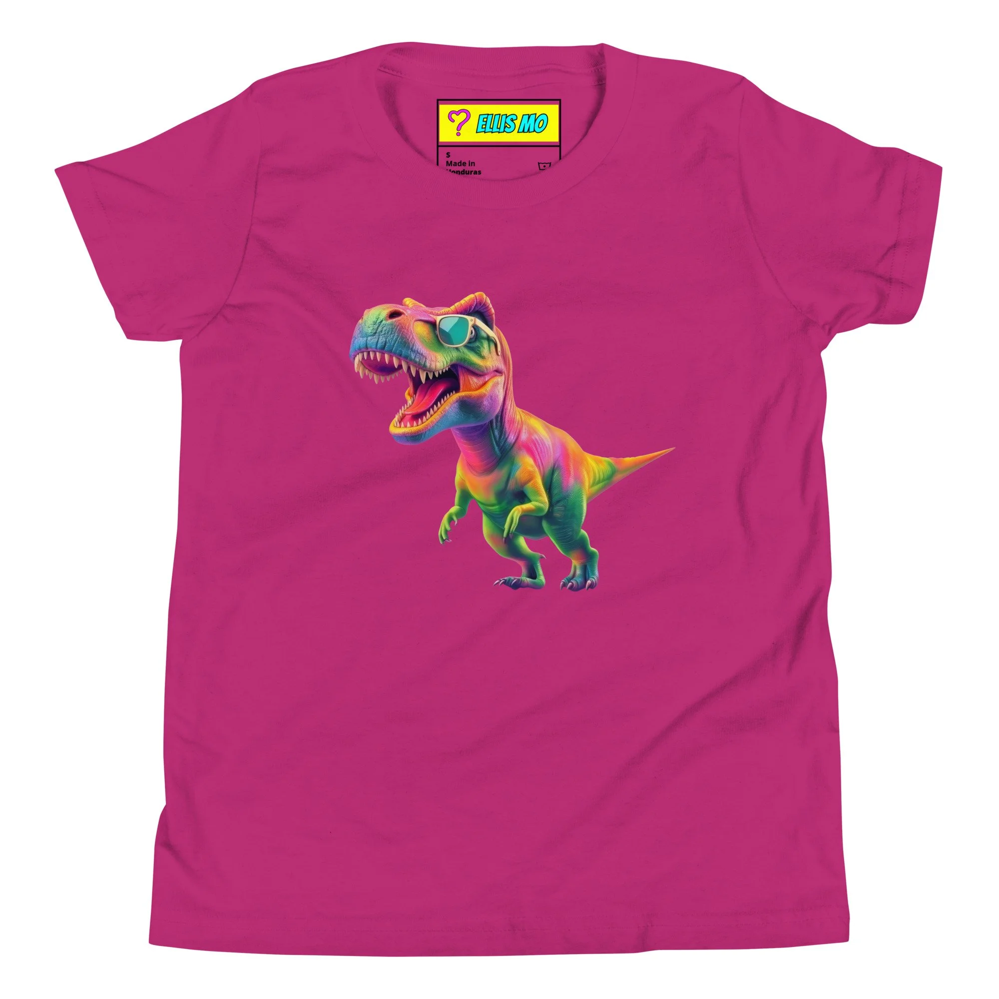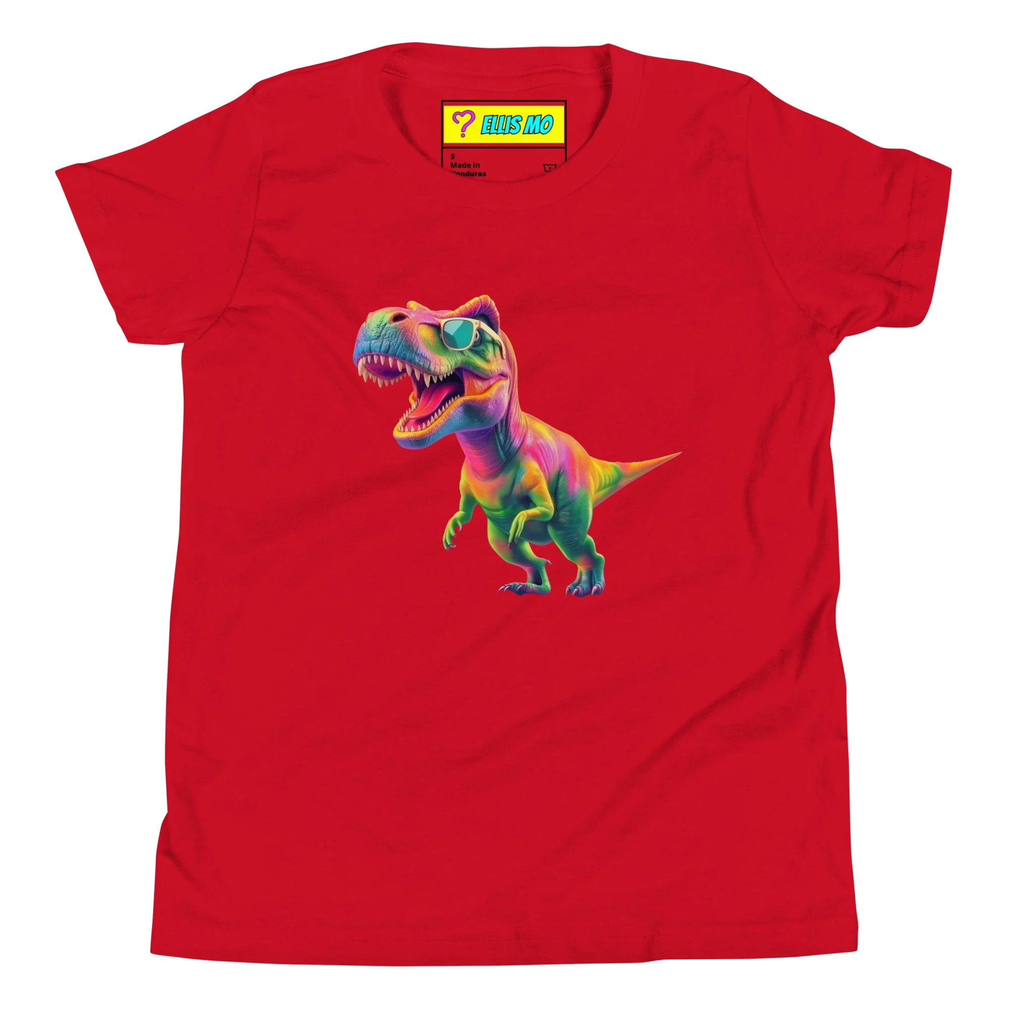 This technicolor T-Rex didn’t come to blend in — he came to headline the asteroid after-party. Sunglasses on. Toothy smile activated. Full rainbow roar mode on.