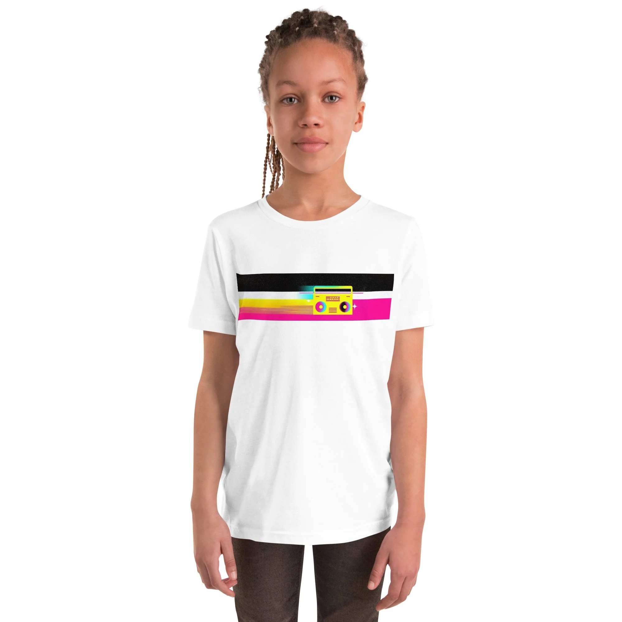 Turn up the volume on curiosity. This retro rainbow boombox tee is made for dance breaks, living room concerts and full-on freeze dance showdowns. Inspired by Ellis Mo’s bold, neon world of learning and dancing, it’s bright, playful and impossible to ignore. Soft enough for all-day adventures and cool enough to feel like the star of the playlist.