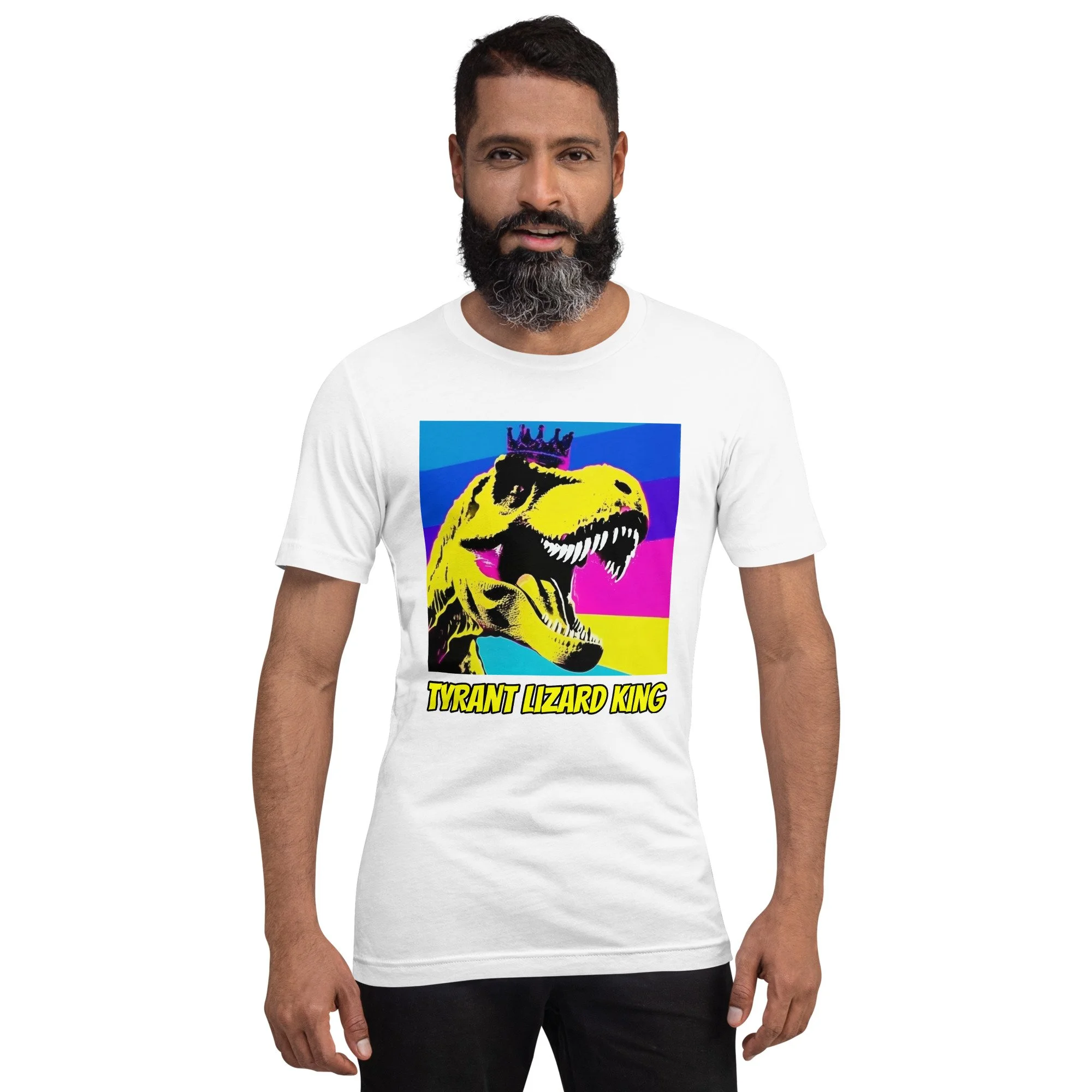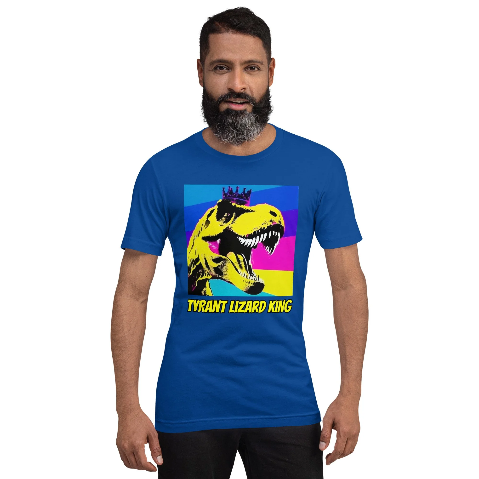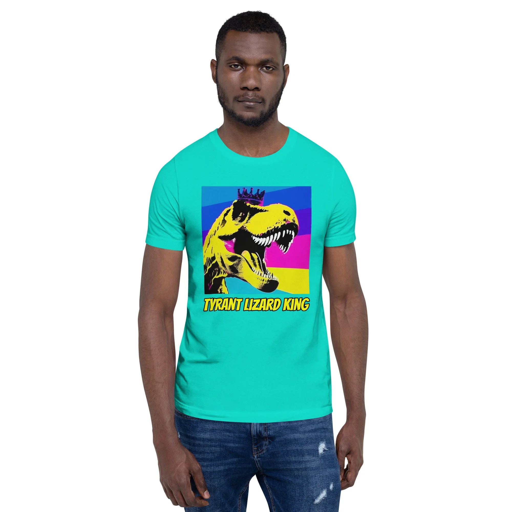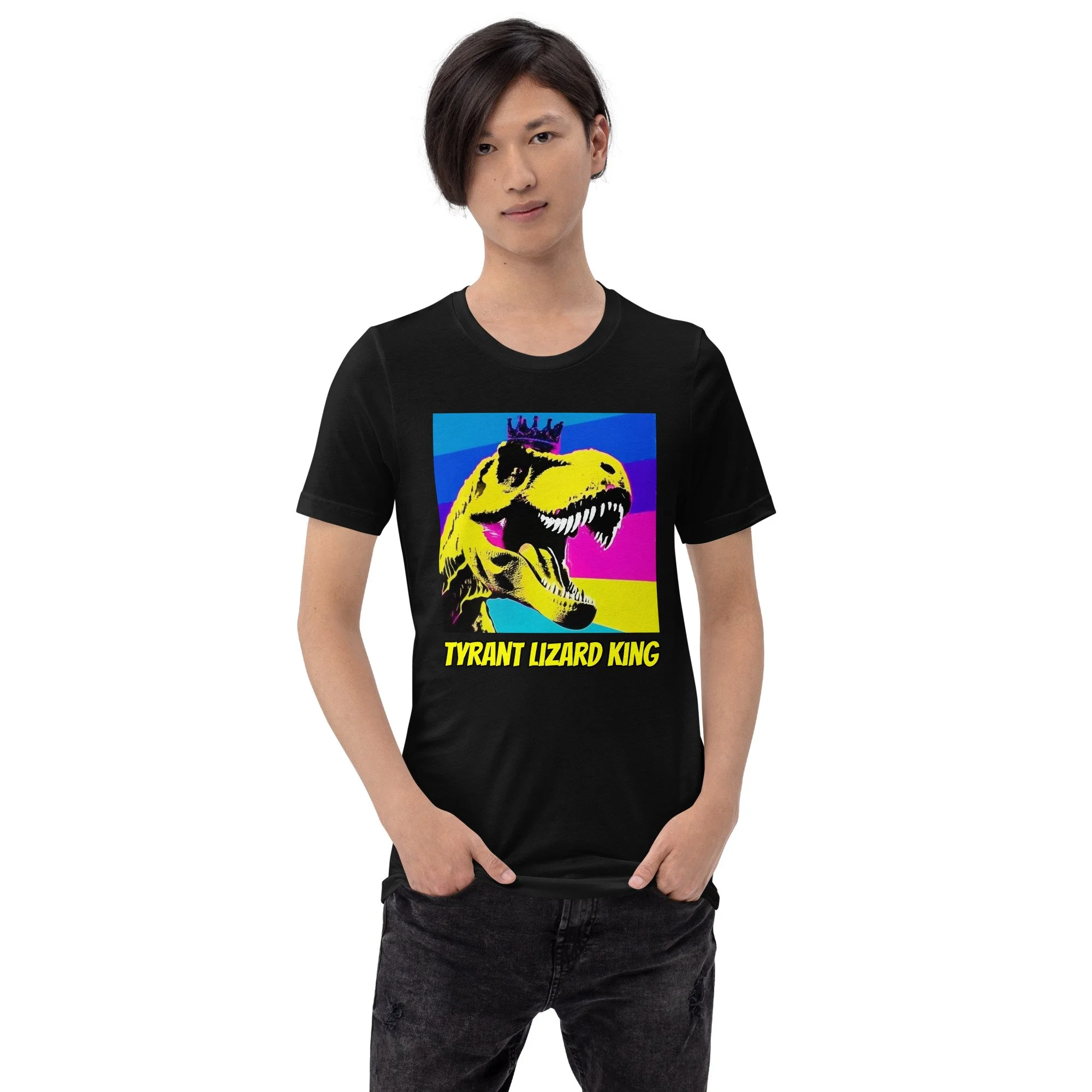 This Tyrant Lizard King Tee brings full prehistoric power in bold neon pop-art style. This is the shirt you wear when you’re leading the freeze dance, explaining asteroid impact theory at bedtime or turning the backyard into Jurassic Park.
